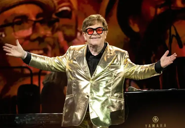 Elton John og Bruno Mars går på scenen og optræder for de 10.000 medarbejdere