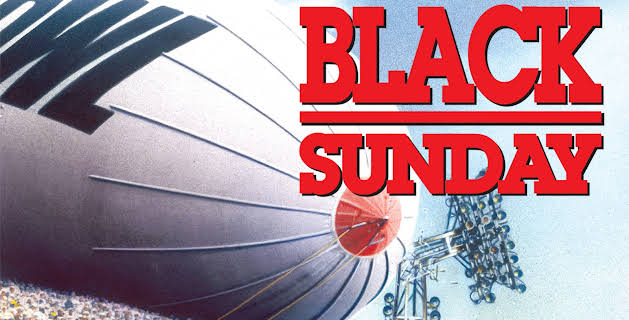 Black Sunday er den potente fortælling om en terrorgruppe fra Black September, der forsøger at sprænge en Goodyear-blimp i luften, der svæver over Super Bowl-stadionet med 80.000 mennesker og USA's præsident til stede. Robert Shaw spiller en israelsk kommandosoldat, der opdager planen, som er udtænkt af Marthe Keller med hjælp fra den forstyrrede Vietnam-veteran Bruce Dern.